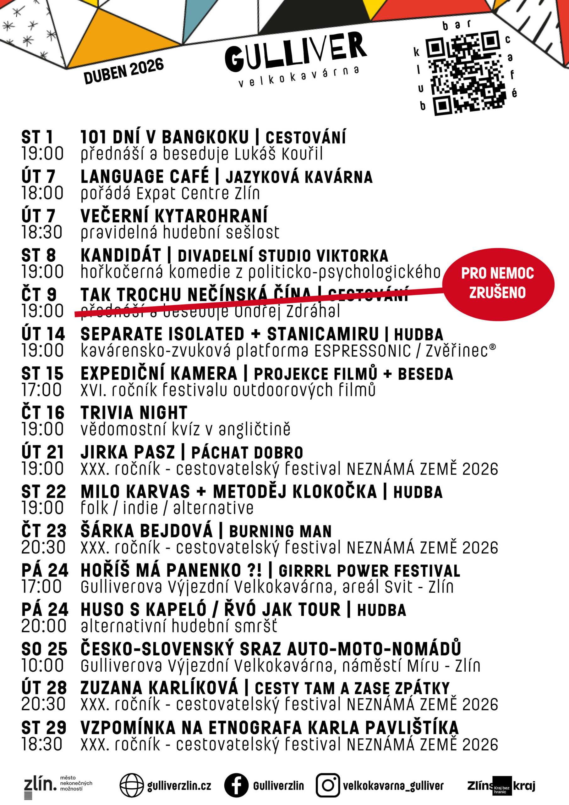 Kulturní akce pořádáme za částečné podpory Statutárního města Zlín a Zlínského kraje.